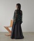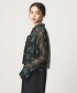 透膚雪紡面料上印有樹葉與花卉圖案。