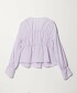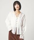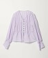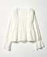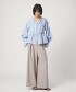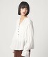 微露鎖骨的領口,以及從抓皺處向衣襬及袖口自然延伸的寬鬆剪裁,打造出充滿柔美氛圍的單品。