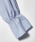 這款條紋罩衫的設計重點在於衣身處的豐盈抓皺。