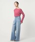 充滿春意地搭配丹寧褲,能營造出健康休閒風格,非常推薦。