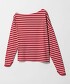 以不對稱剪裁為亮點的條紋長袖T恤。