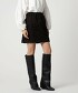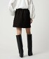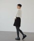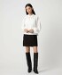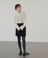 利用有著凸起表面感的緹花材質,完成狀態的迷你裙以極簡設計呈現。