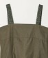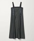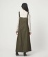 肩帶的緞面設計、粗股車縫線、大尺寸箱型口袋等,於細節處注入巧思的吊帶裙。