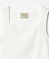 方領設計的細肩帶背心,讓頸部與鎖骨線條更加優雅俐落。