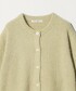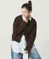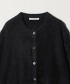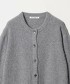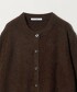 狐狸羊絨柔和的毛料質感為圓領開襟衫增添了穿搭的亮點。
