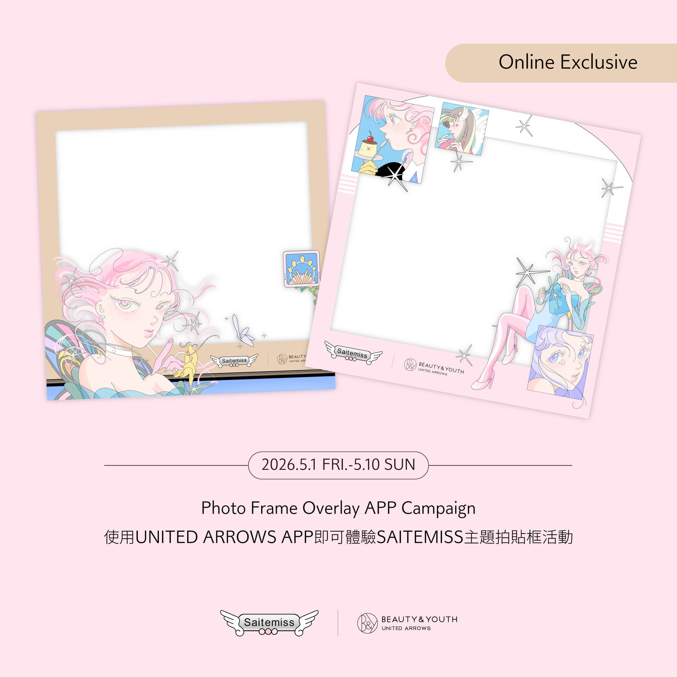 同慶 SAITEMISS POP UP STORE 活動,期間內下載UNITED ARROWS APP成為會員,即可體驗BY x SAITEMISS線上拍貼框活動 並有機會獲得 限量聯名 T-Shirt!(共2名)