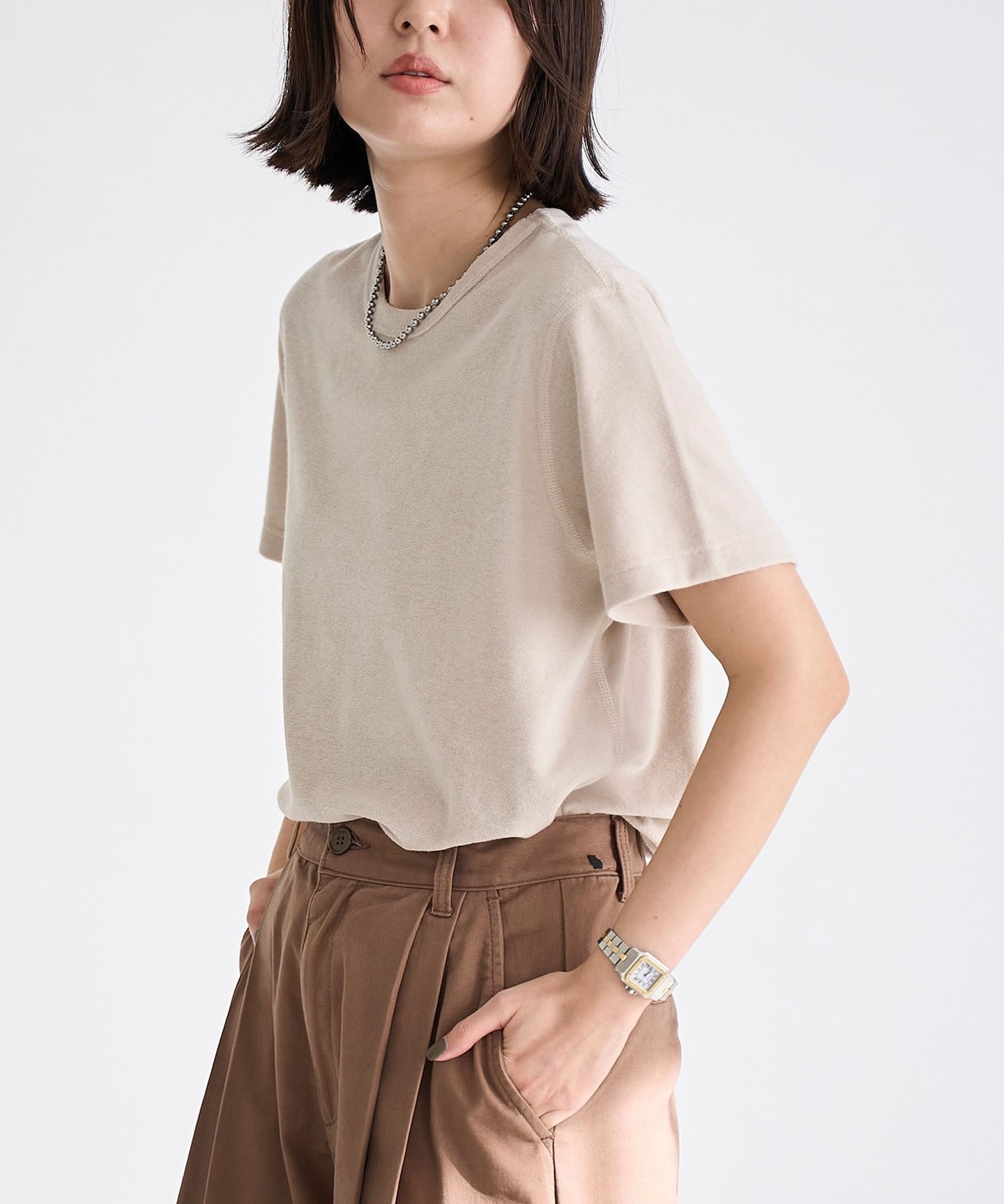 本季寬的尺寸有做窄一些 下擺兩側有做開衩,手袖也有做打折皺摺設計 即便全素色也不單調無聊