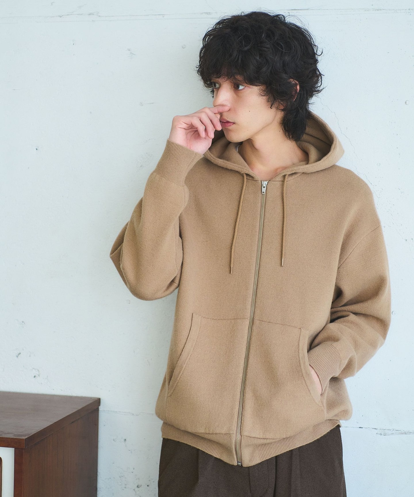 近年來備受矚目的拉鍊連帽外套,我們特別選用針織材質打造。 針織材質特有的蓬鬆感、溫暖度與柔軟觸感是其一大特色。 版型適度寬鬆,正面的袋鼠口袋更是設計上的亮點。