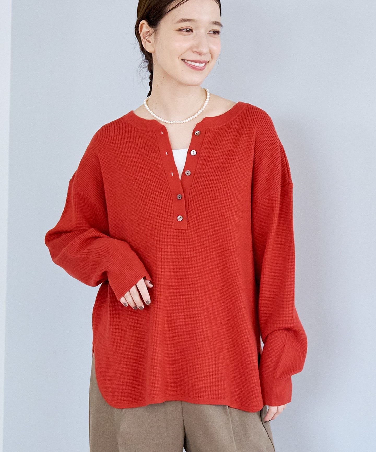 混羊毛2WAY亨利領華夫格針織衫