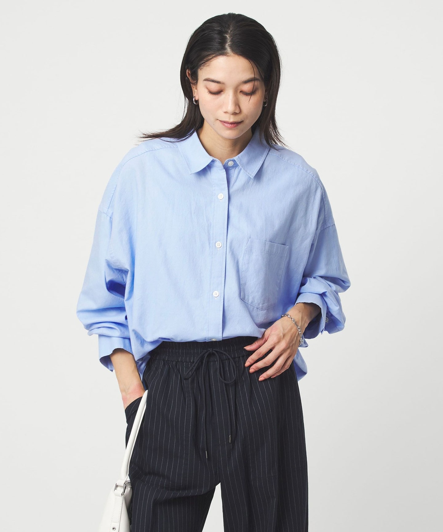 是一件日常或工作都可以穿搭的萬能褲 腰部採鬆緊設計穿起來非常舒適 寬褲版型設計也非常好看!