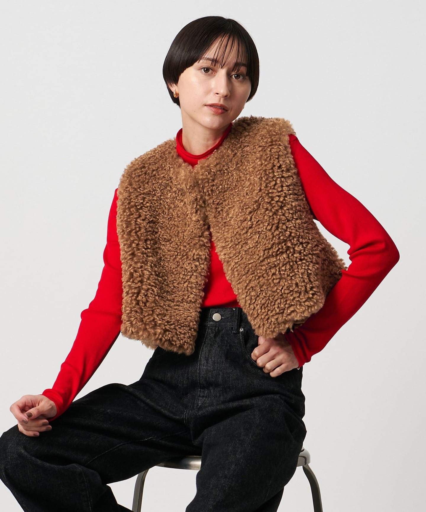 短版毛毛背心,中間只有1顆釦子。腋下開動大,適合秋冬厚衣服也能穿著。材質超舒服,有泰迪熊的感覺。
