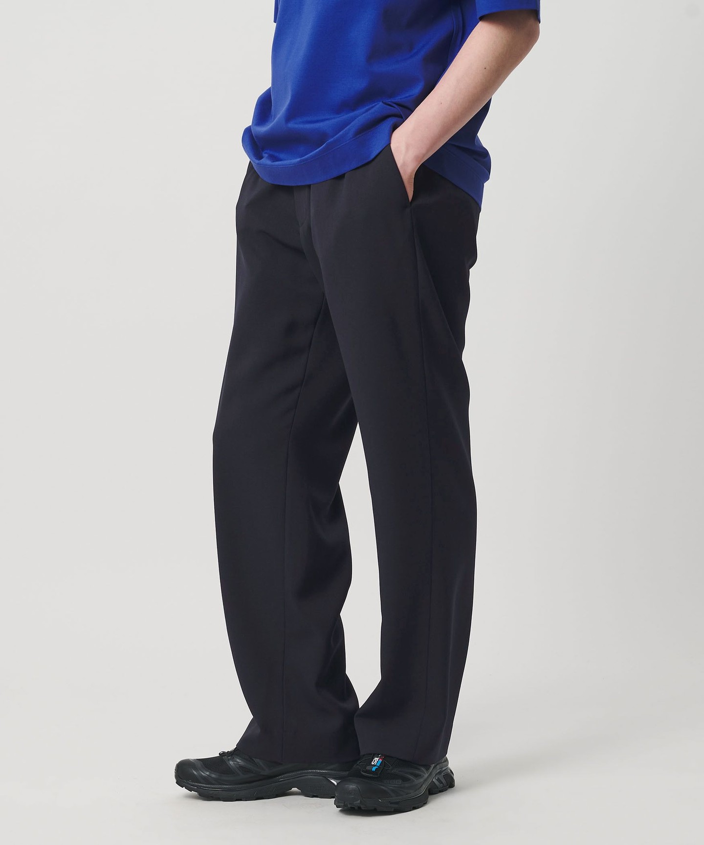 與外套一樣, 具有撚線感的乾爽質地,直筒版型俐落