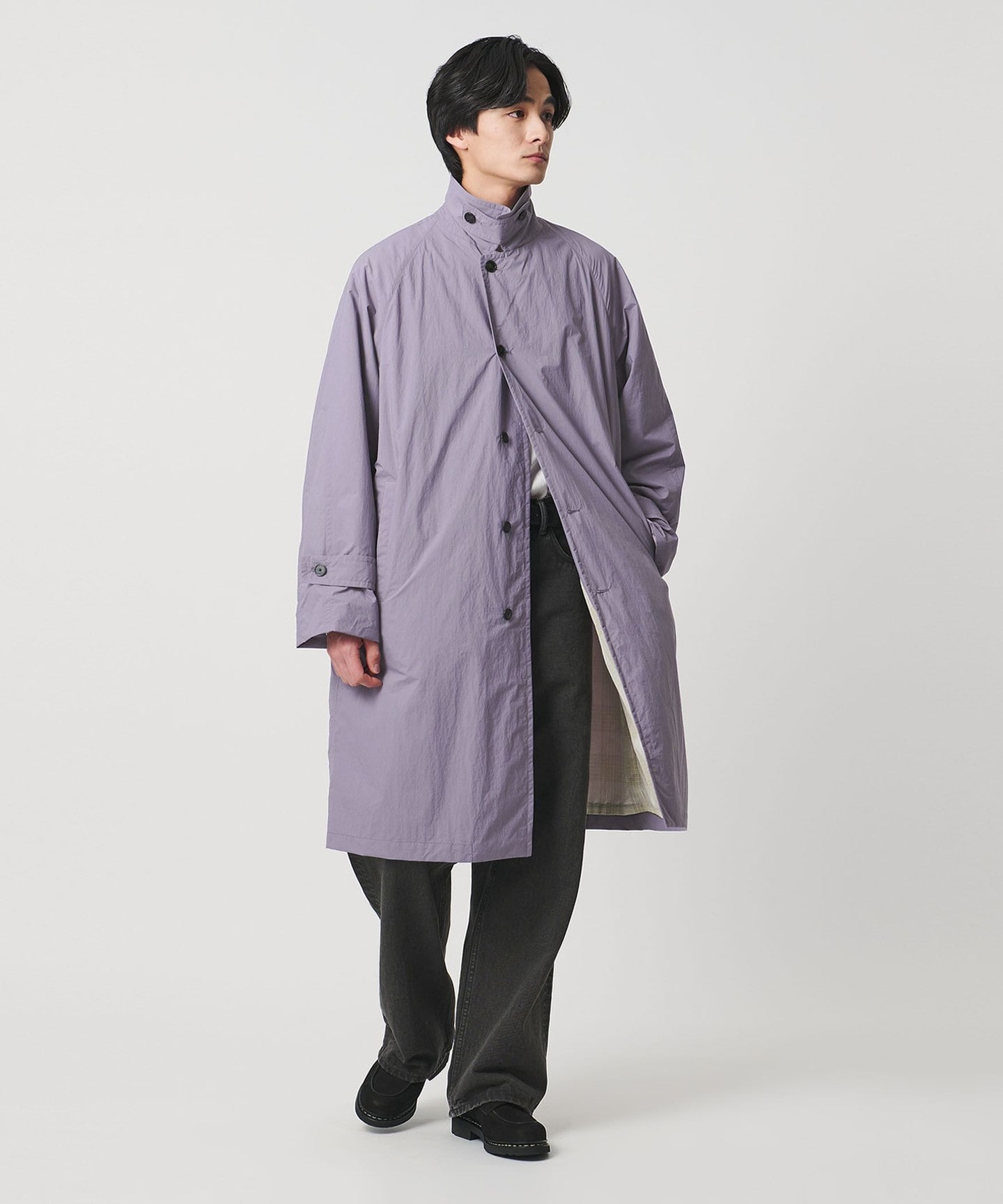 版型寬鬆, 布料經由揉洗處理,表面呈現自然褶皺感與微起毛觸感,適合初春外層使用