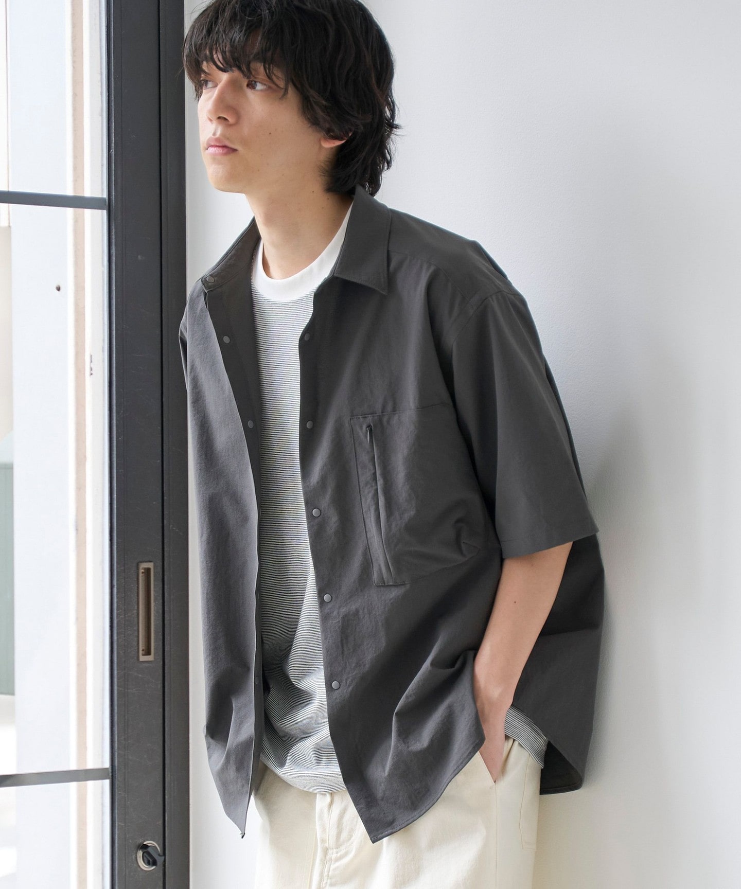 褲管呈現自然的弧度,上寬下窄的設計不僅能修飾腿型,還帶有一種日系男裝特有的鬆弛感