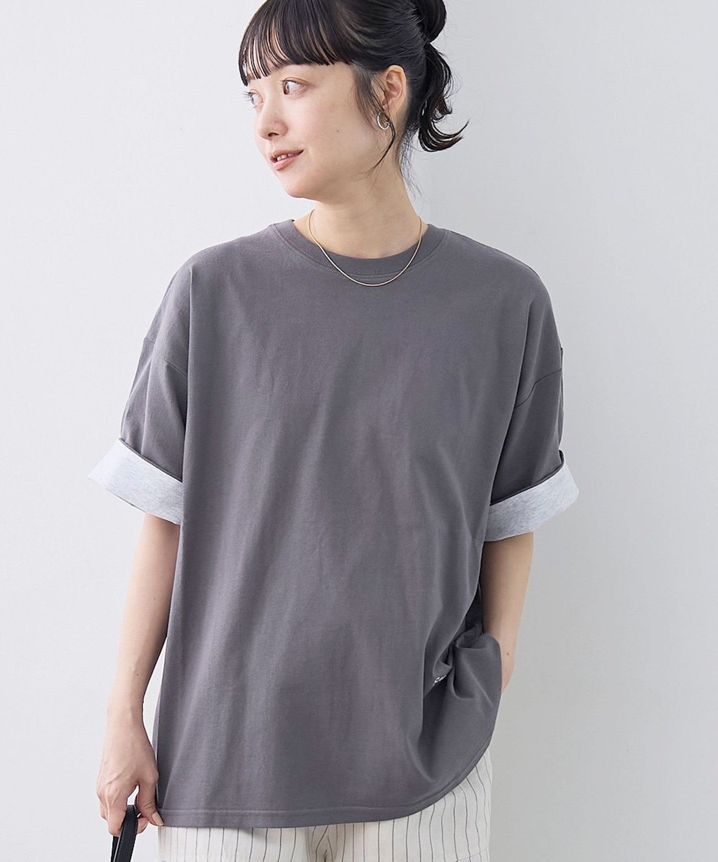 袖口配色LOGO刺繡T恤
