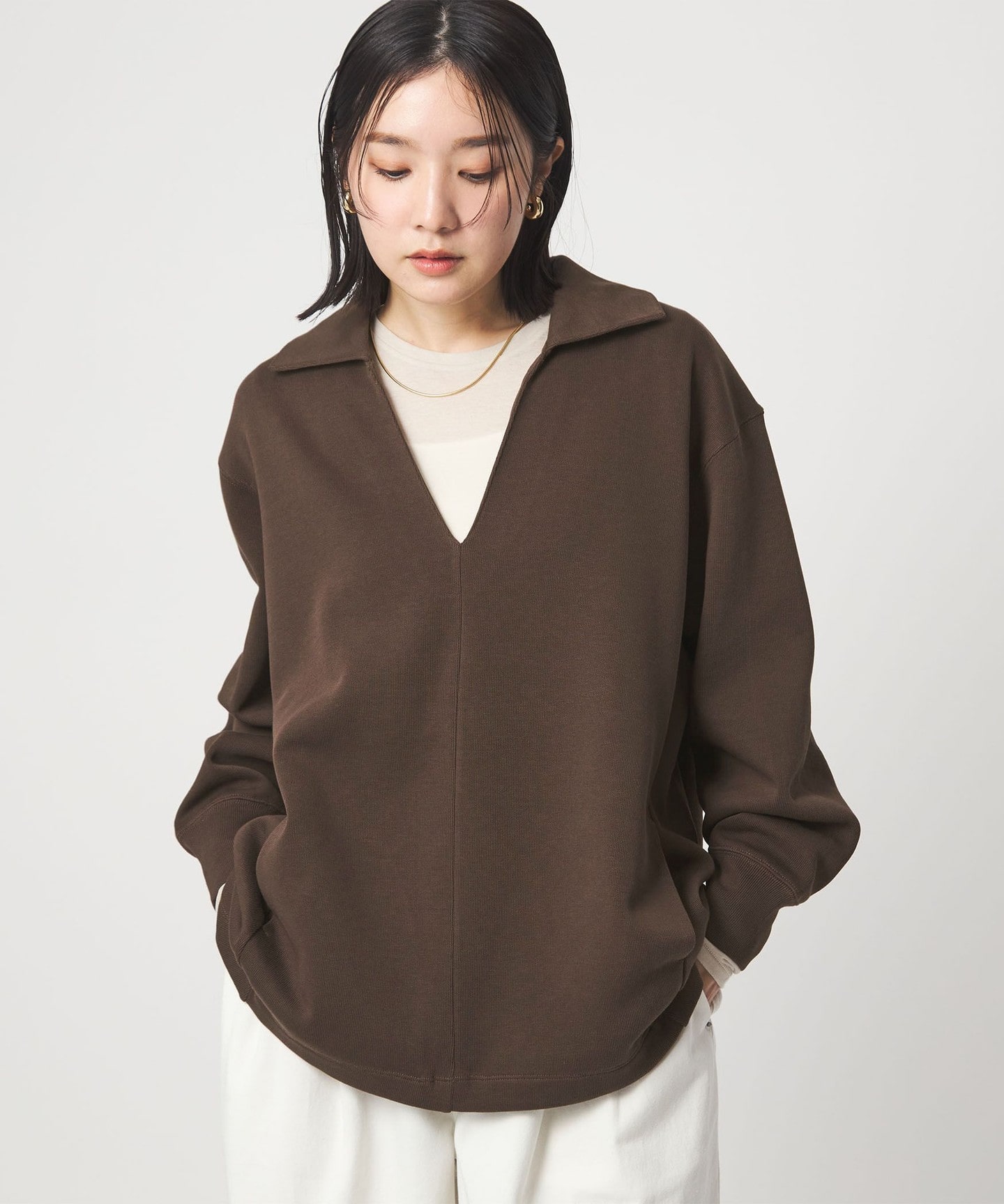 滿寬大的,V領偏低,需要內搭。寬傘A line,有口袋。
