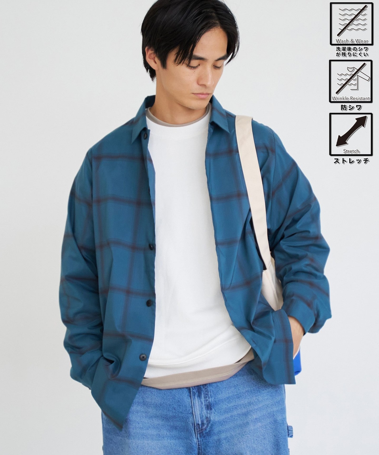 • 輕鬆彈性抗皺圖案拼色襯衫
