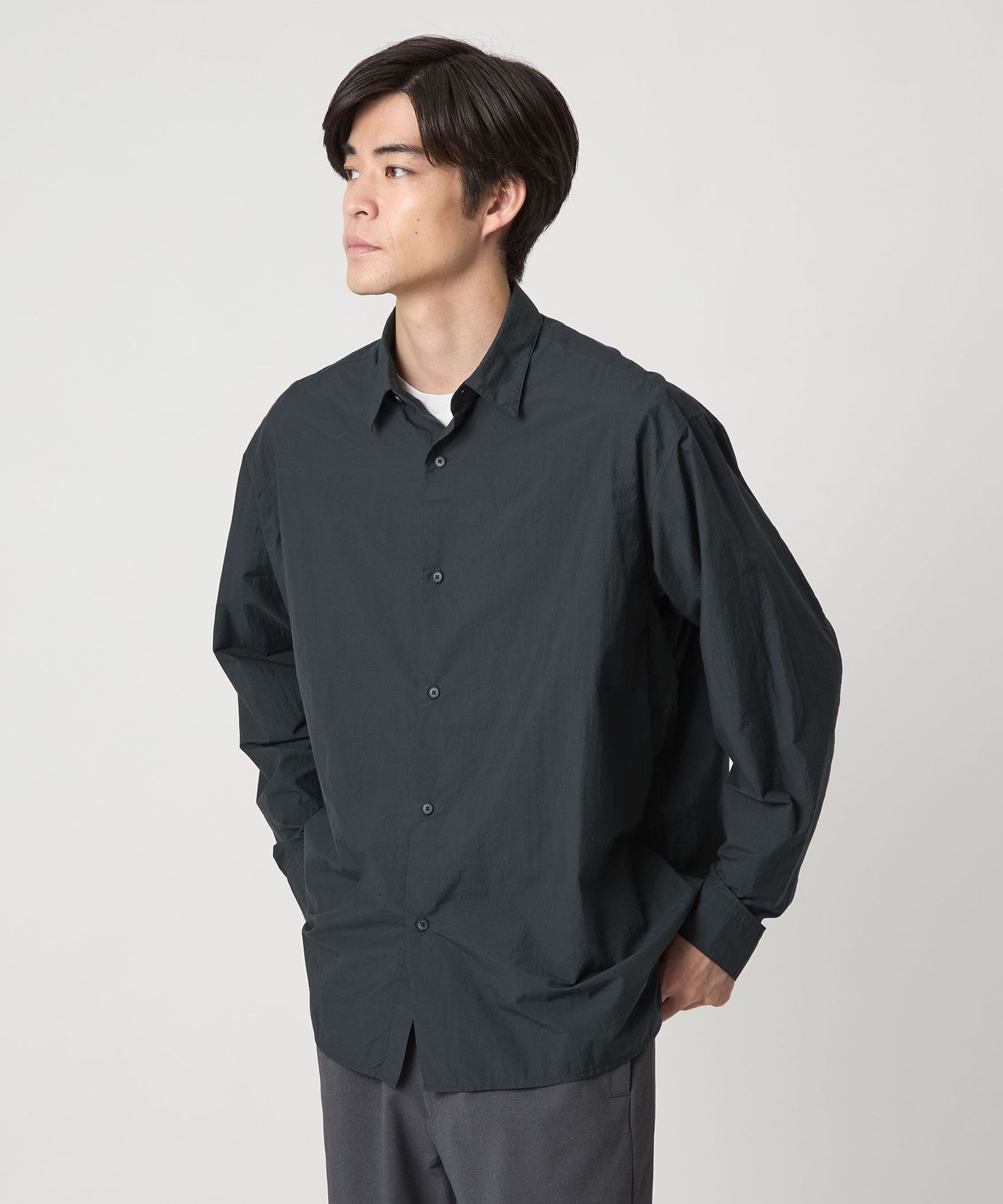 尼龍x棉的寬鬆襯衫+寬丹寧褲