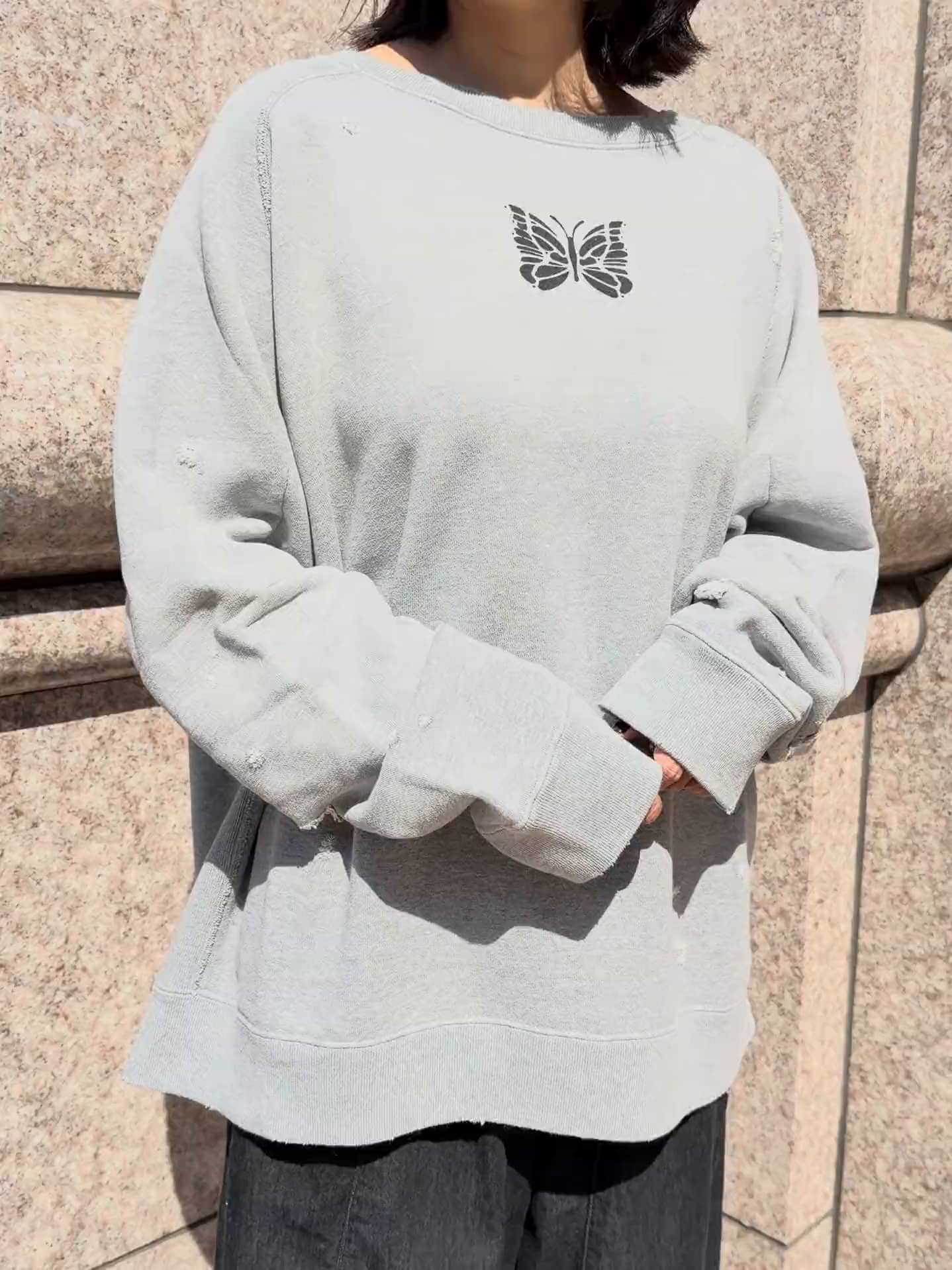 洗舊破洞復古衛衣 版型寬鬆穿M號