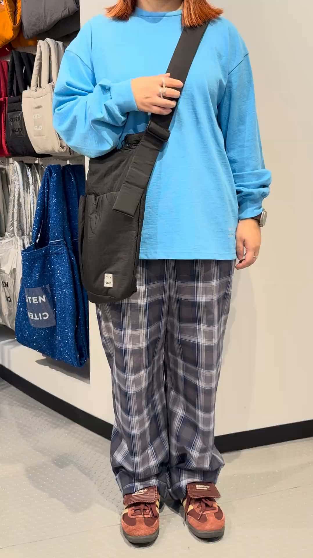 格紋褲材質較硬挺,版型寬鬆舒服!