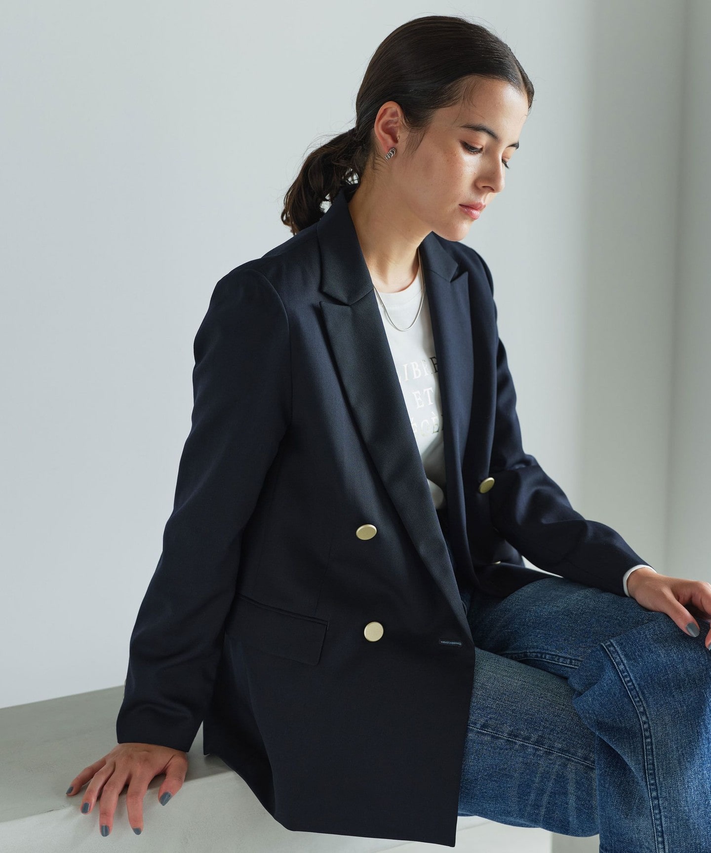 從外套露出的雙色襯衫,營造出俐落又優雅的氛圍。