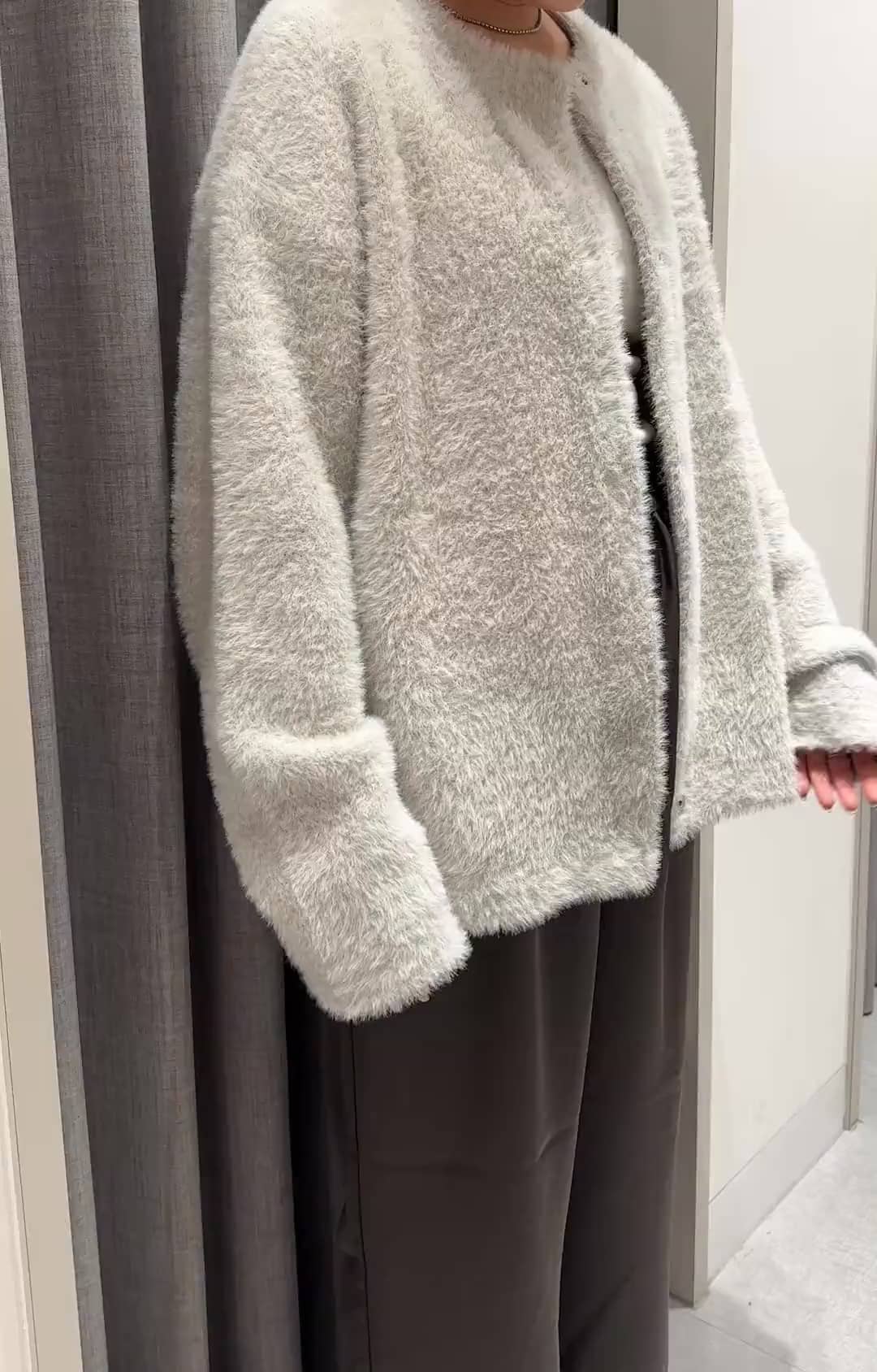 針織羽毛毛衣穿起來很時髦,再更冷一點可以內搭高領更好看,保暖與好看兼具。