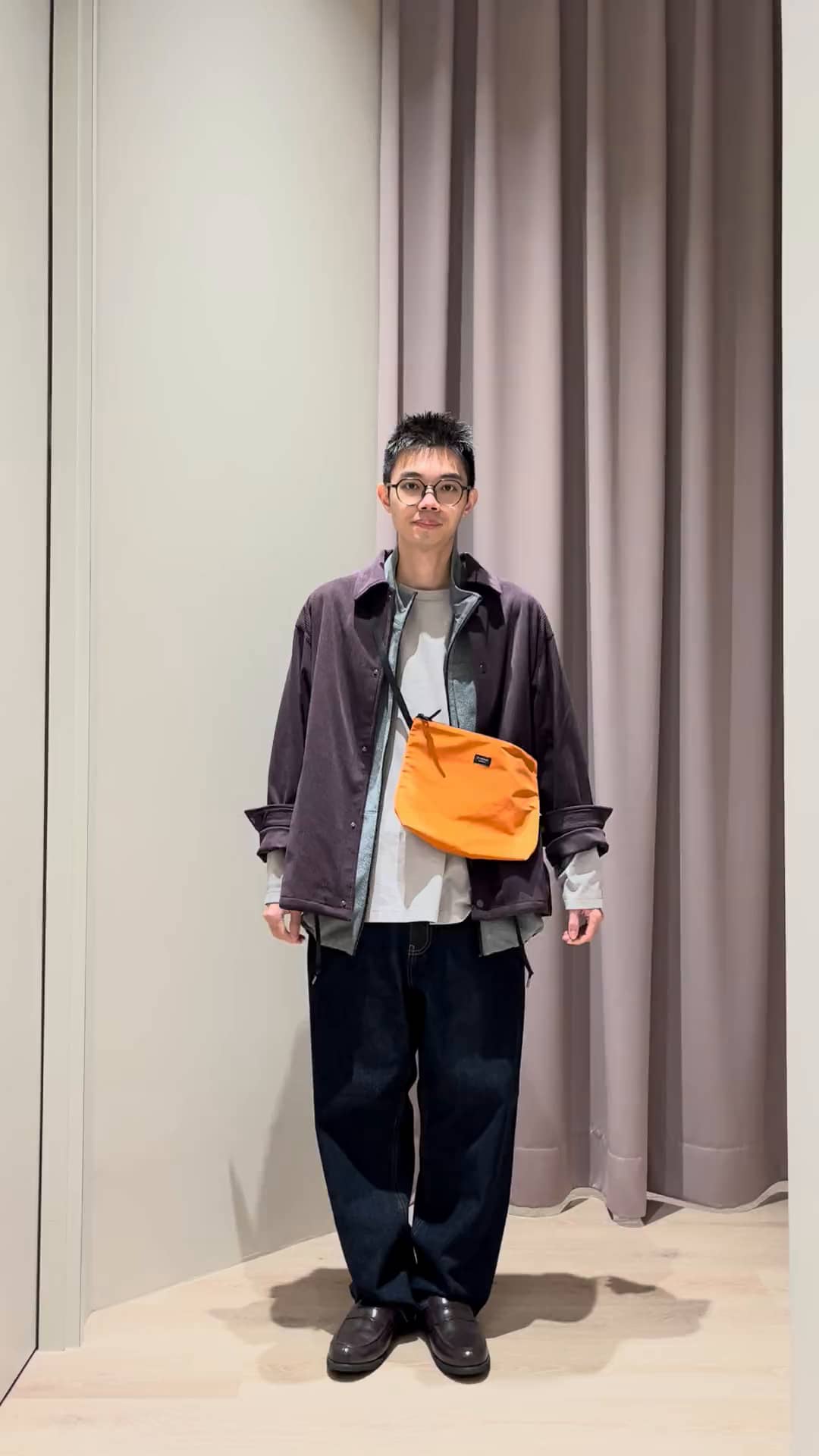 這套以外套挑一個特別的紫色燈芯絨,內搭可正反面穿的背心,整體有層次也保暖,褲子微寬鬆的褲子,配上樂福鞋,整體休閒正式都可。推推🫡