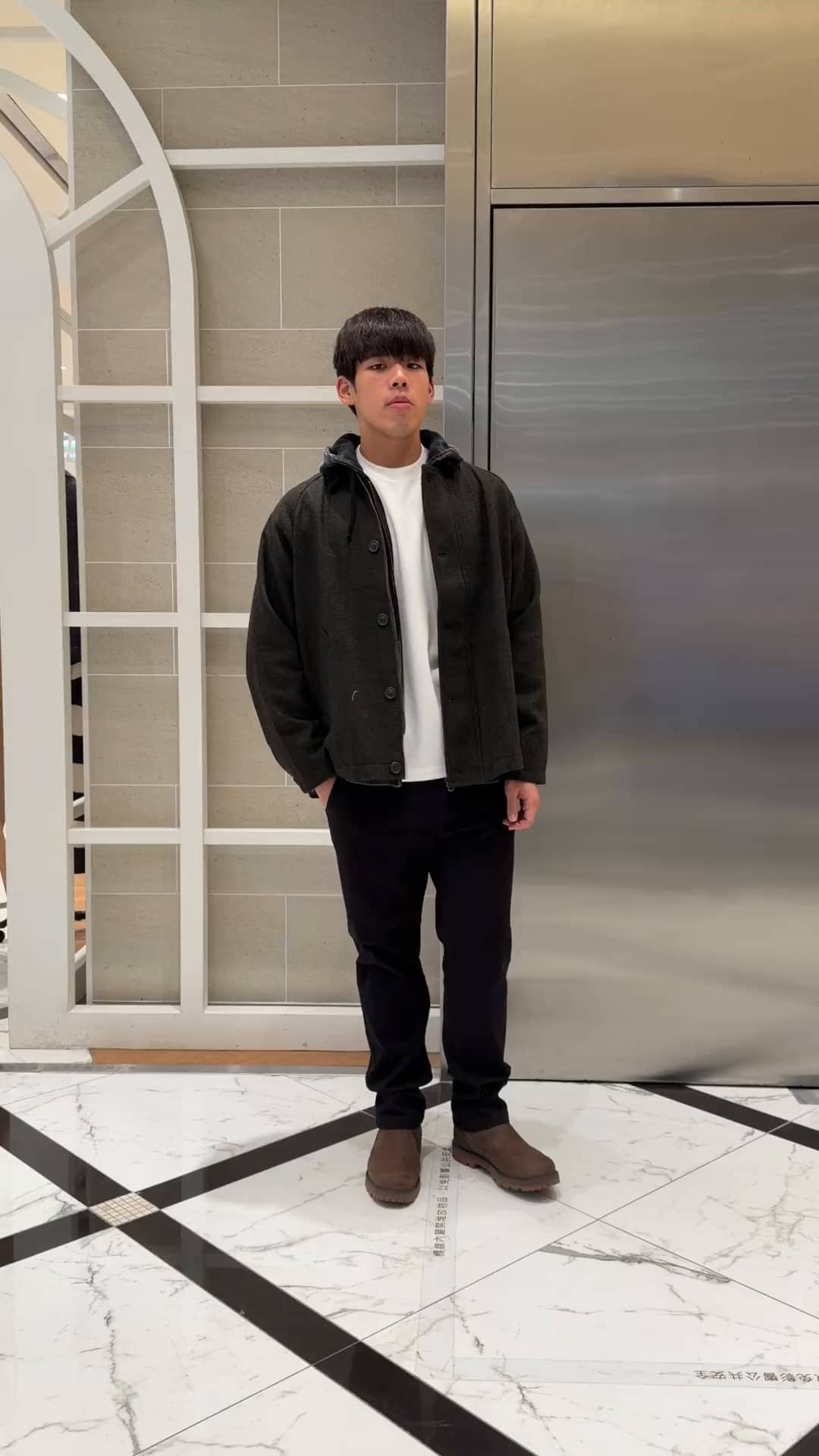 秋冬穿搭,內搭改襯衫可以有微正式感脫掉其中一件外套也可以當成室內穿搭外面夾克可以穿同系列的其他顏色
