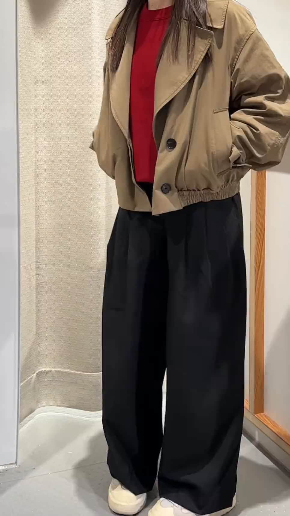 針織衫是仿衛衣的版型,整體寬鬆舒適,毛料紮實不刺膚,風衣外套短版穿起來顯得俐落,袖口有調節扣設計!