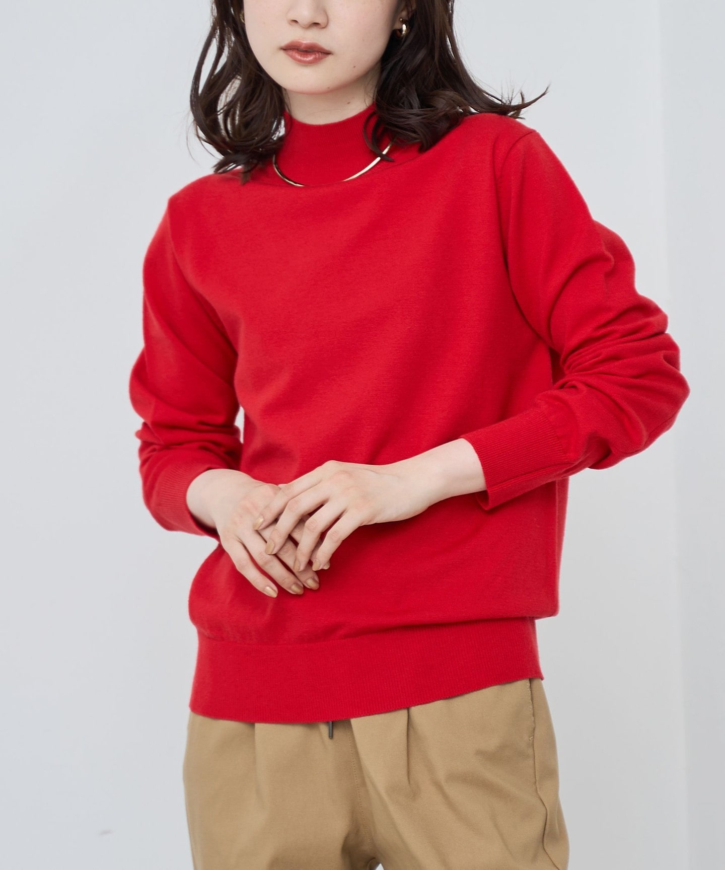 紅色毛衣柔軟親膚、不刺,顏色飽和明亮,適合搭配牛仔褲,外層加上可雙面穿的背心,簡約休閒方便活動。