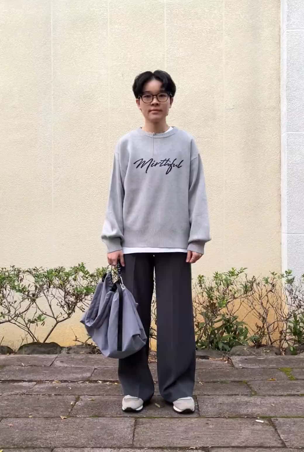 整體呈現休閒輕便的灰色系搭配,內搭白色背心點綴,上衣稍厚具有保暖性,有logo的設計不會過於單調,下身有自然的垂墜感,面料非常舒適親膚,兩樣單品都簡約百搭