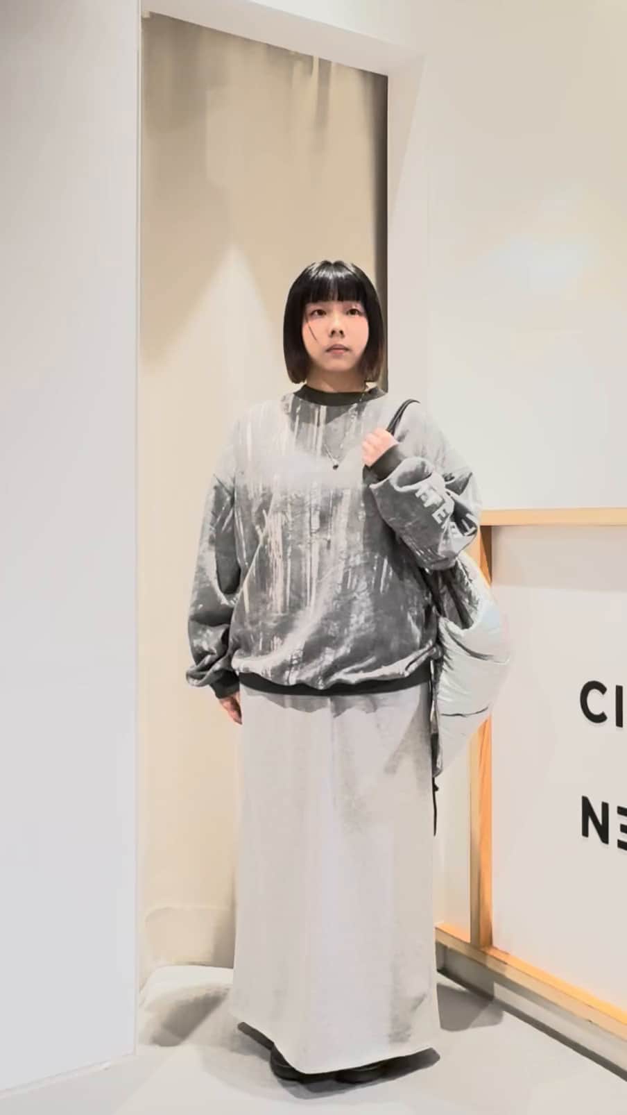 近期流行的樹紋大學踢,下身穿著百搭的運動棉質長裙,再搭配銀色束口背包,休閒風格中帶一些戶外感。
