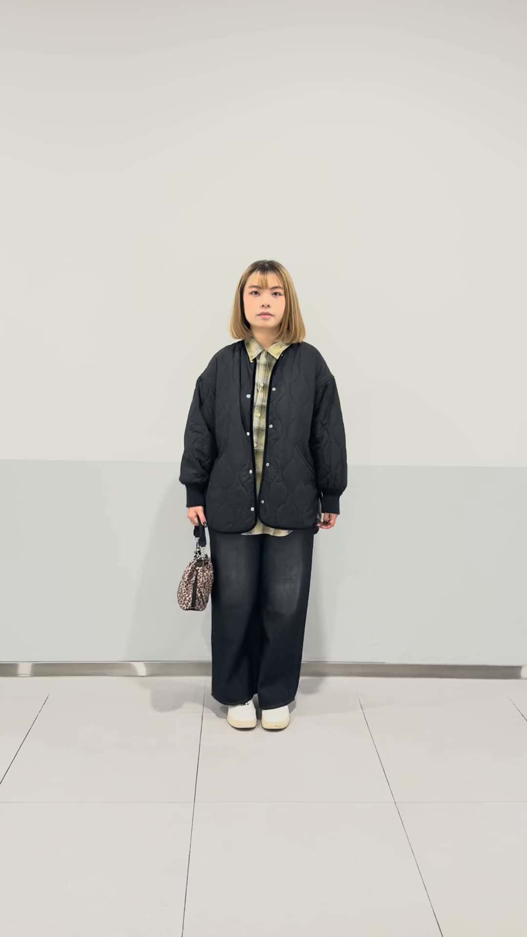 綠色襯衫搭配黑色外套讓整體穿搭穩重耐看,搭配一個豹紋包包是一個小亮點,有趣又有層次感