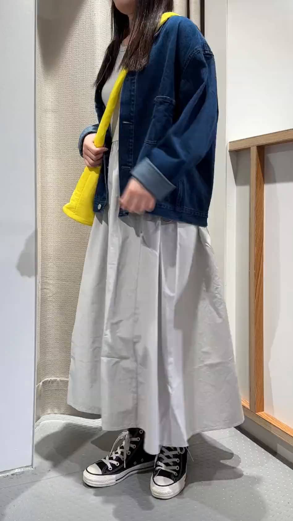 洋裝是異材質拼接,傘狀裙擺可以有效修飾下身線條,水桶包有多種顏色任您選擇!