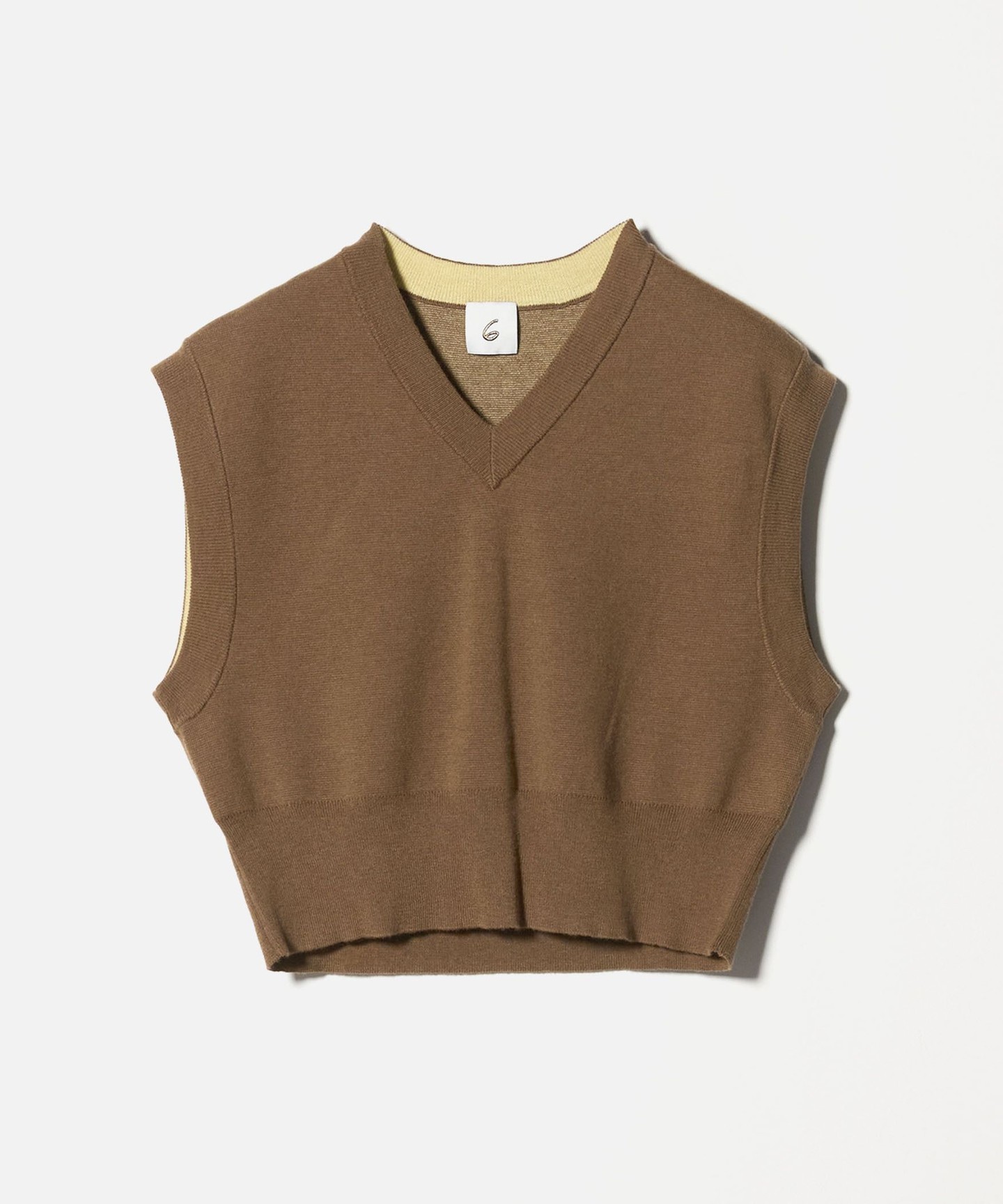 • <6(ROKU)>棉羊毛米蘭羅紋V領背心