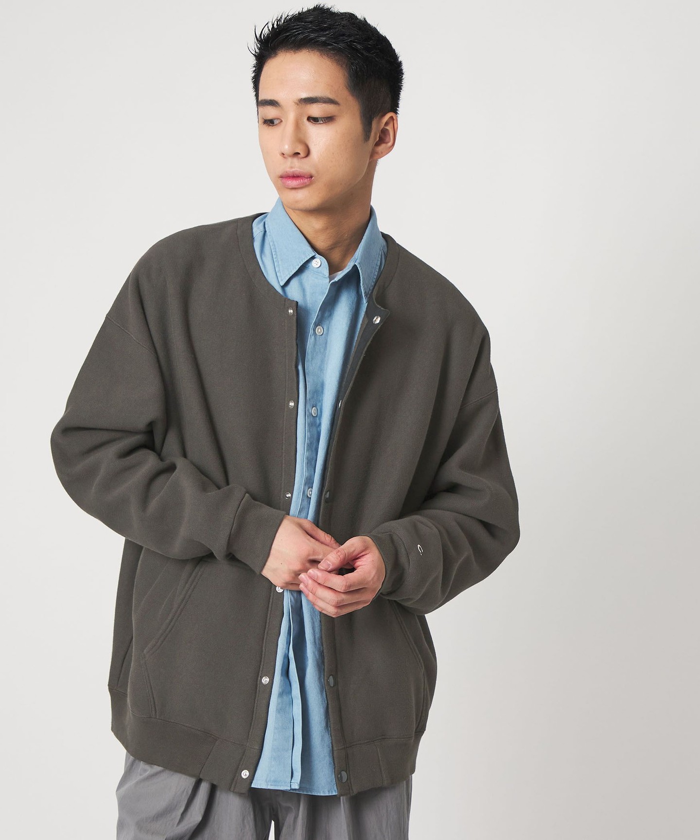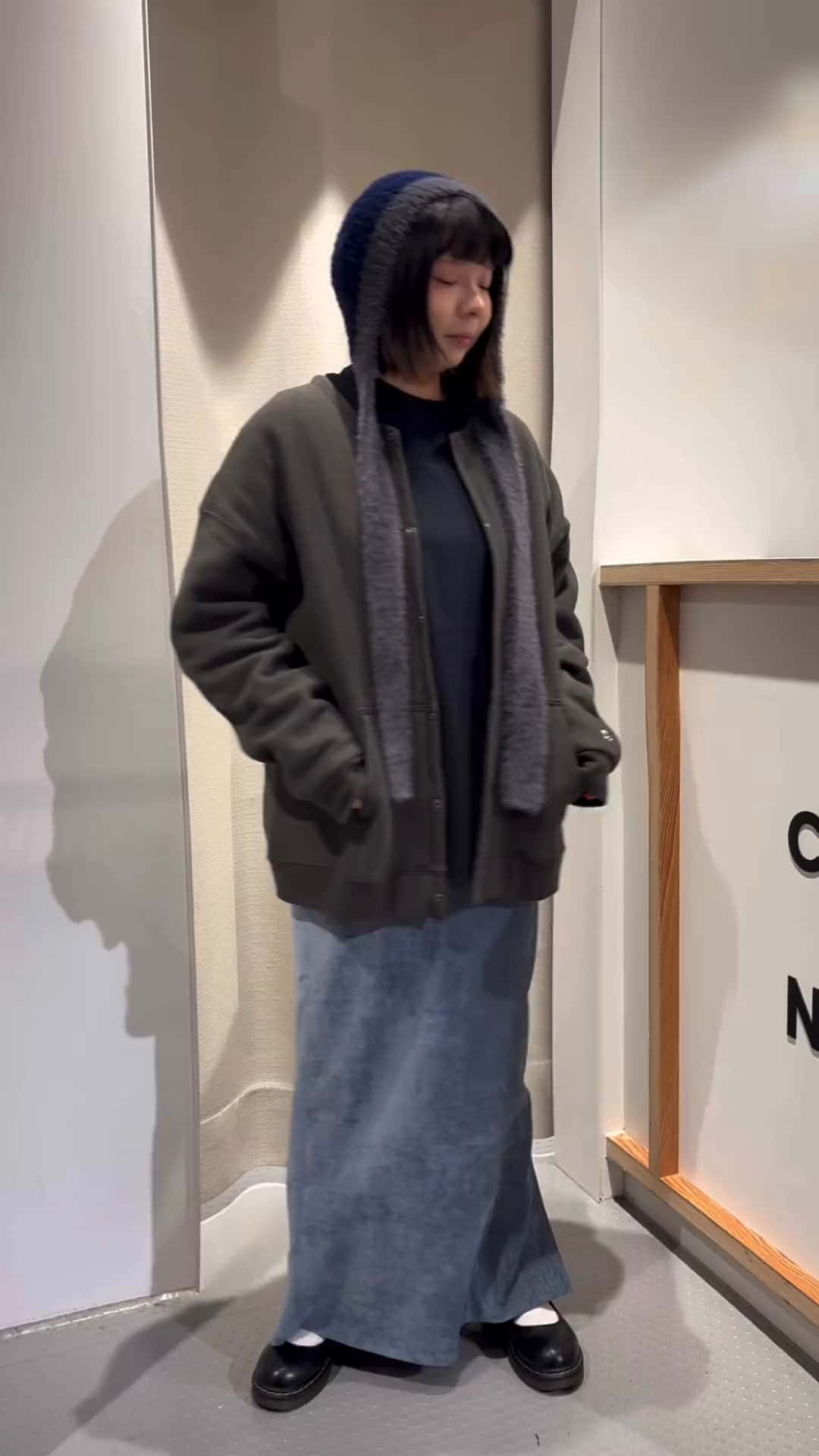 百搭的開襟夾克,內有刷毛,增添保暖度,下身搭配絨布長裙,打造整體休閒感