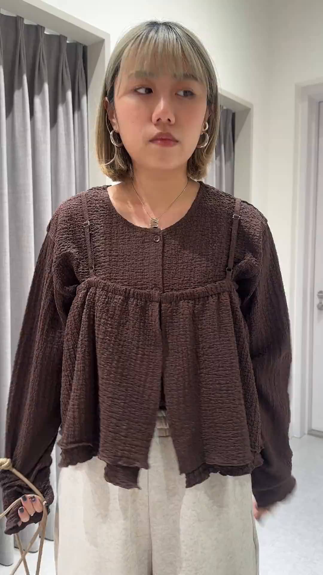 兩件式的上衣可以自由搭配,混搭運動感的棉質弧形褲,想要質感一點可以穿尖頭鞋。