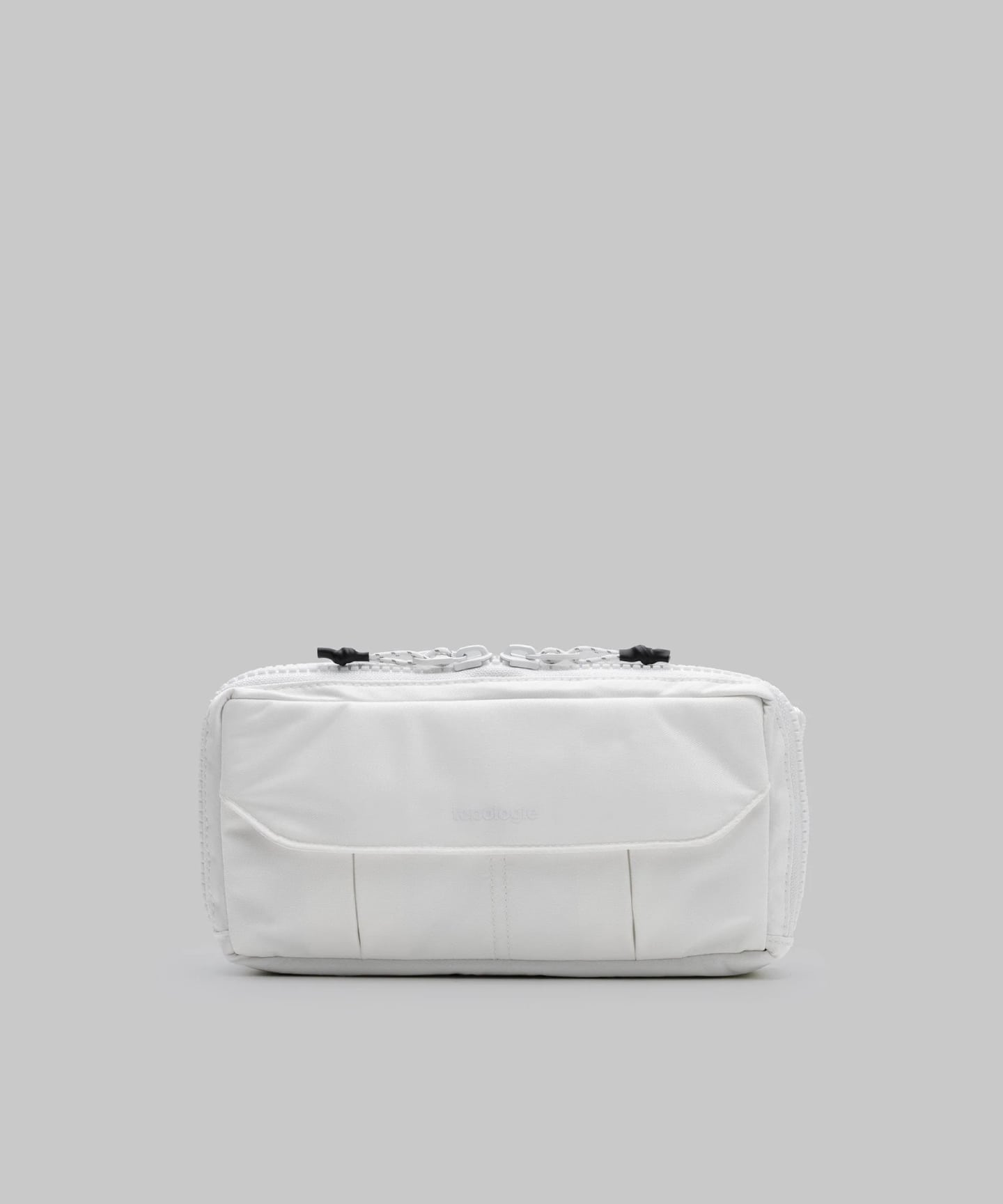 黑色皮鞋增添俐落感,小巧的白色手提包則成為亮點,讓休閒中多了一分精緻。