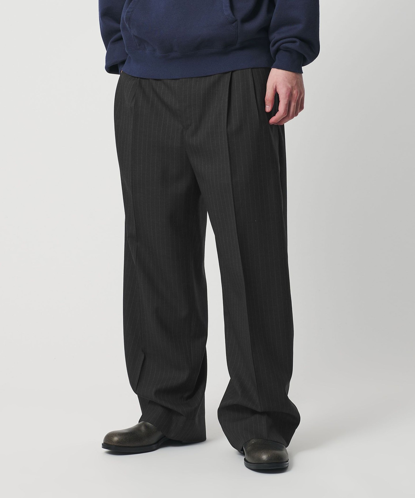 HM今年春夏的多款單品也加入了刺繡的行列,搭配HBY粉筆紋西裝寬褲混搭正裝風格