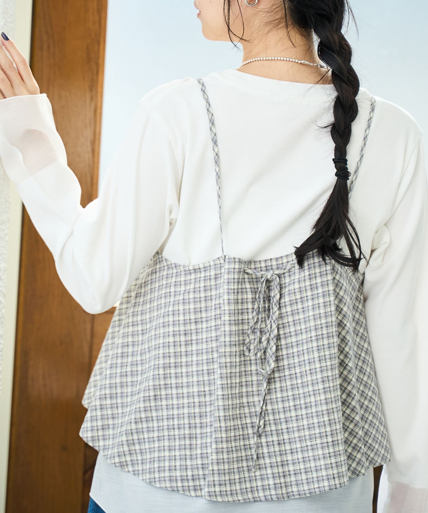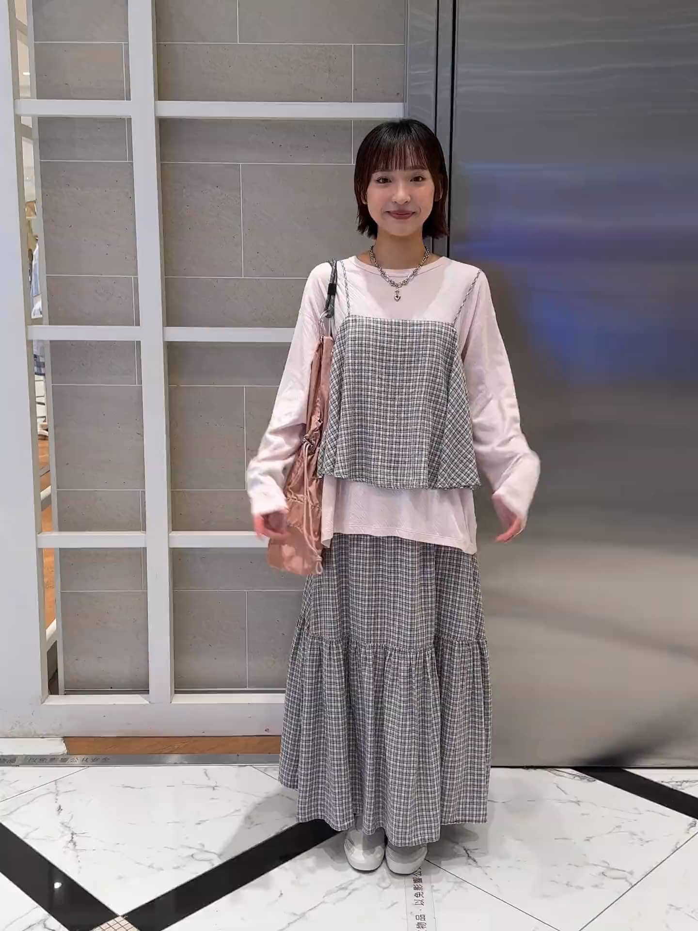 格紋背心與長裙可以搭配一整組加上粉色柔軟上衣配搭,更有春天的感覺!