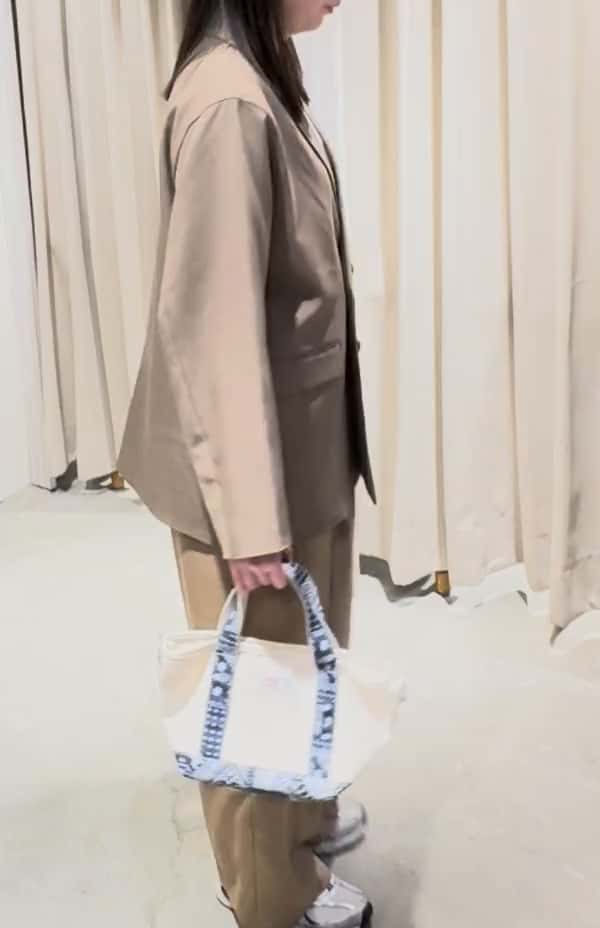 西裝外套搭配同色系褲子,休閒又有點正式的感覺~👜