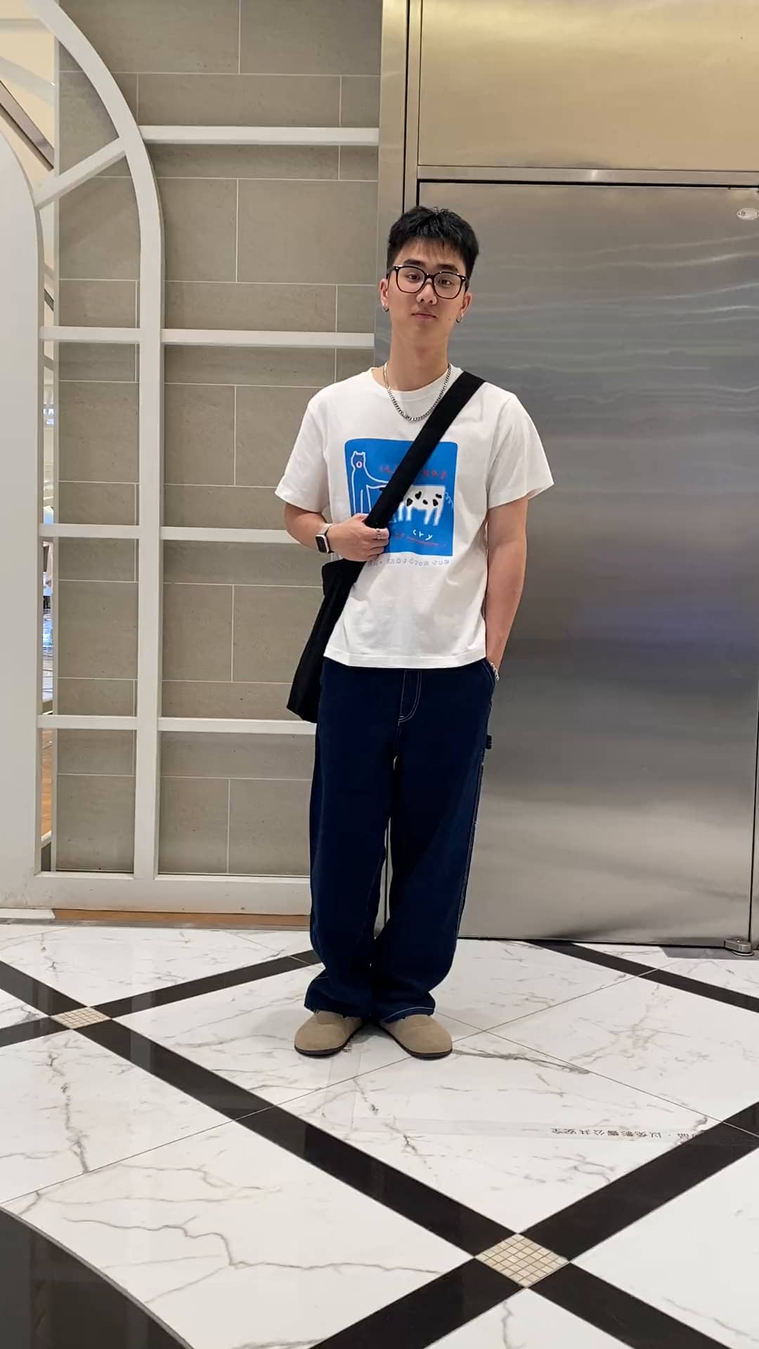 可愛的牛牛上衣俐落的剪裁 搭配深色牛仔褲俏皮中又帶一點成熟