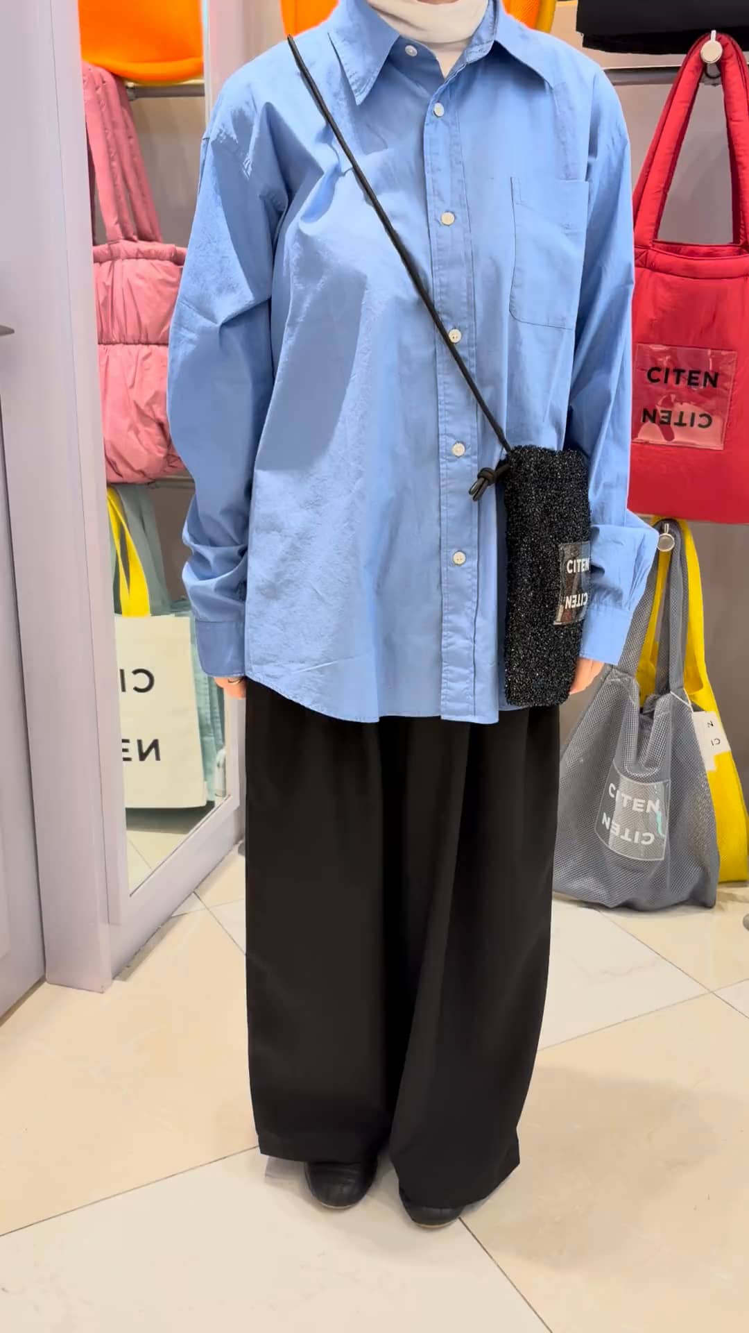 中性的藍色襯衫內搭透膚半高領正好適合現在的秋天穿搭!搭配黑色金蔥小包低調優雅又有精緻小細節~