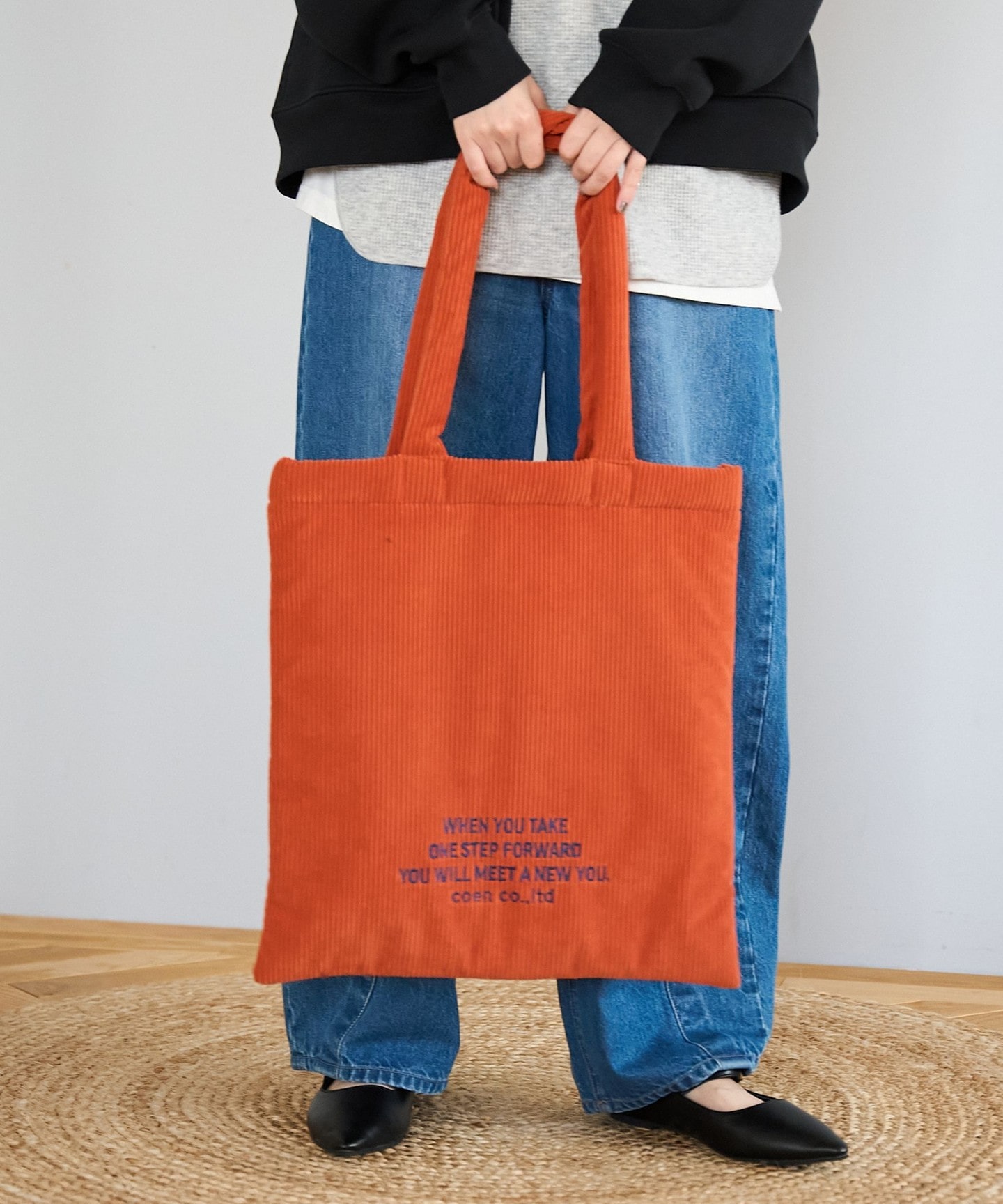 LOGO刺繡 燈芯絨托特包 尺寸:FREE 顏色:ORANGE 價格:NTD1,390
