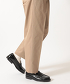 半寬版型,兩側設有兩個內褶,褲管從褲襠到褲腳逐漸收窄。
