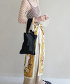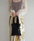單肩手提包,具有獨特的內外設計。有三種尺寸可供選擇:S、M 和 L尺寸是S。透過委託生產服裝的縫紉工廠製作包款規格,我們可以製作出在包袋製造商或服裝製造商找不到的獨特氛圍的商品。