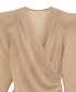 交疊式裹身設計更添女性柔美氣質,飄逸的薄紗布料增添了一絲微妙的韻味。內建肩墊和略長的袖子則賦予其現代氣息,使其成為簡約而又極具CLANE標誌性的單品。精緻的