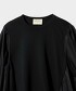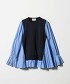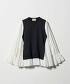 在兩側部分採用摺皺加工,具有寬鬆感的喇叭型輪廓是這款針織組合襯衫的亮點。