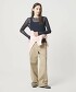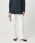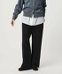 腰部線條簡潔俐落,褲管為寬版直筒設計。