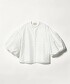 這款襯衫以較短的衣長設計,搭配內部懸垂設計的蓬鬆泡泡袖,其平衡感為一大亮點。